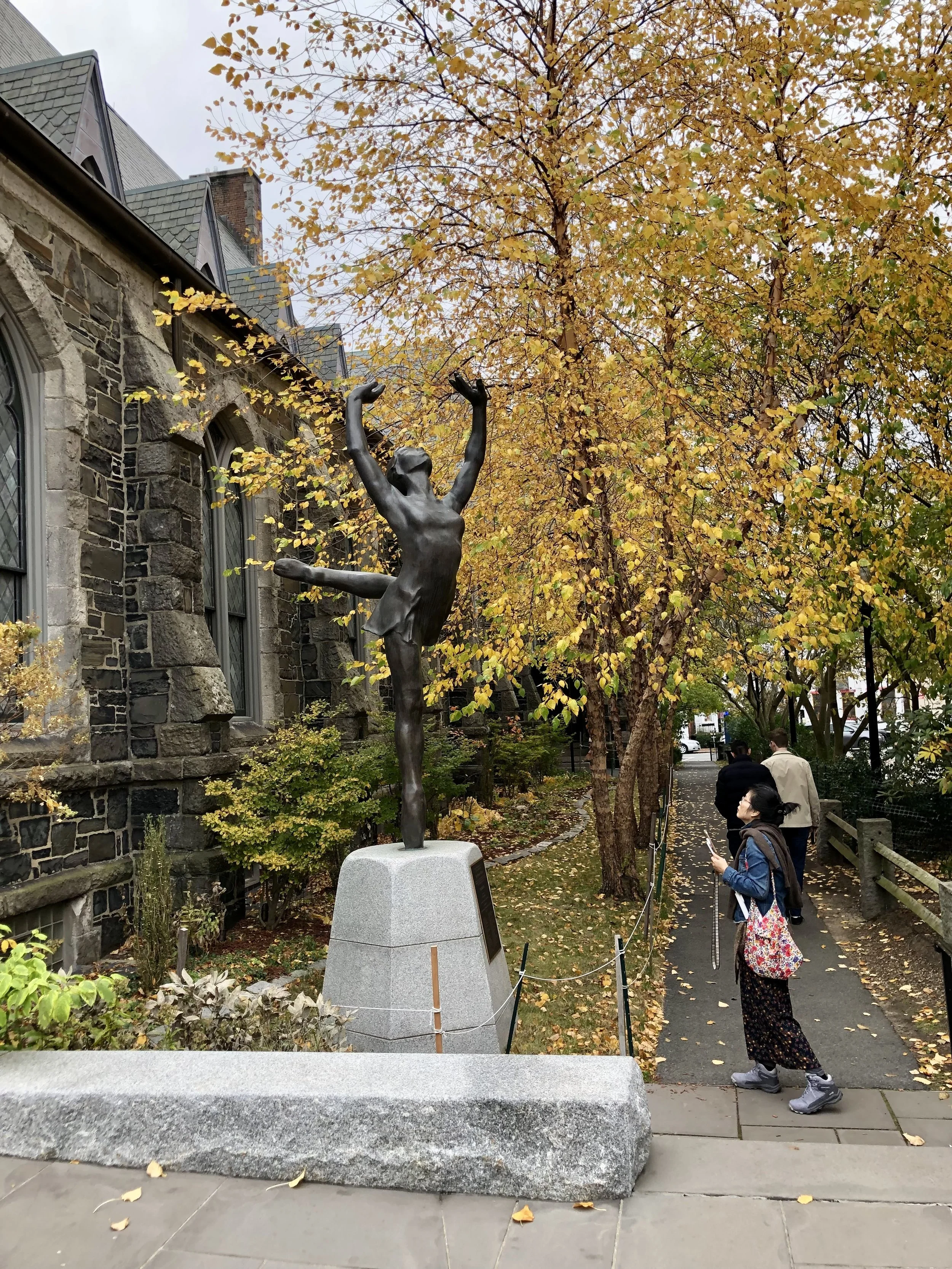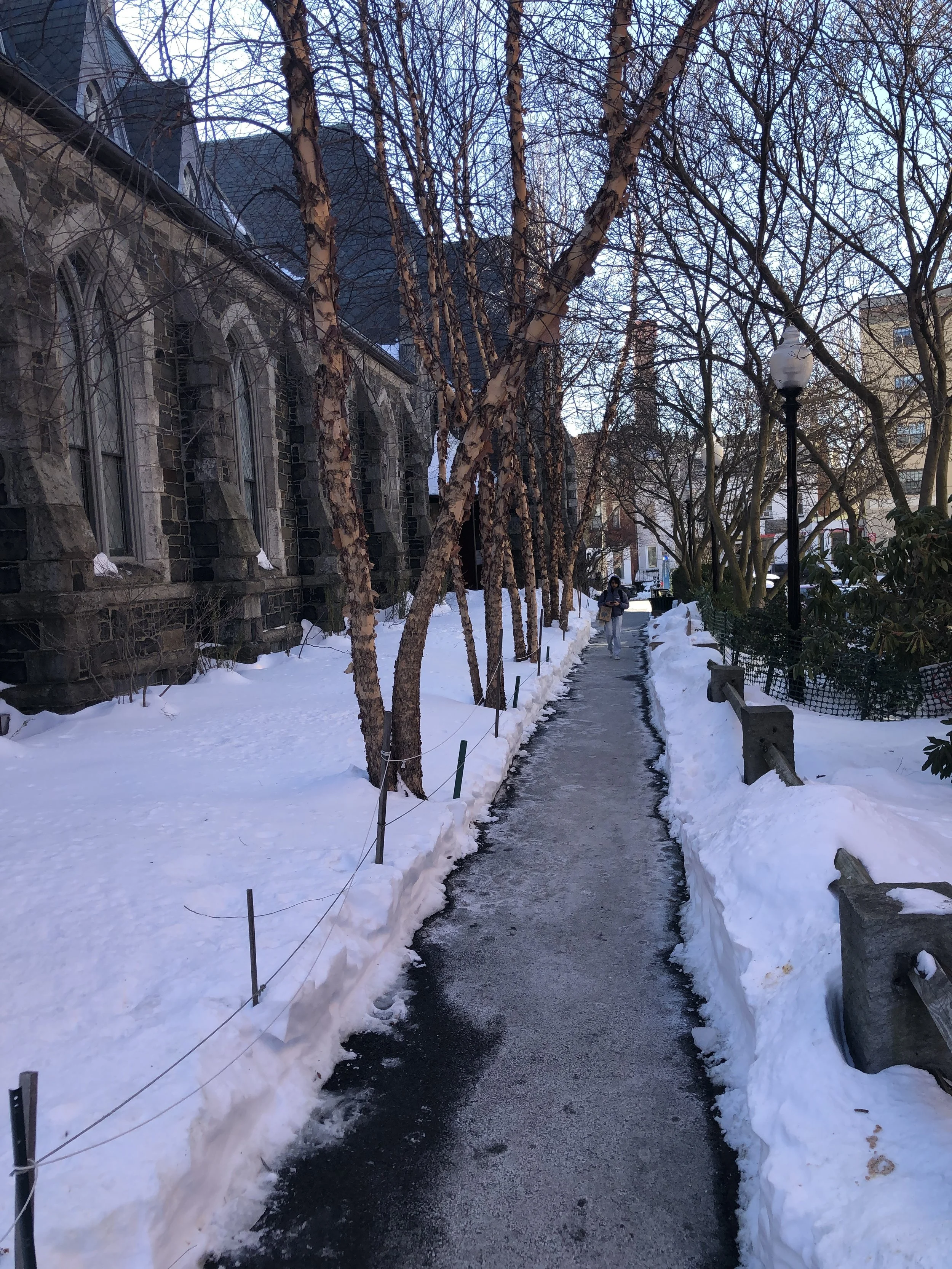 The garden offers walkways and several benches where anyone—congregants, visitors, tourists, neighbors, parents of ballet students, faculty, college students, laborers on nearby work sites, employees from buildings in the vicinity—may pass through, sit, rest, read, eat, visit, meet, meditate, or simply enjoy the cultivated surroundings; a respite in nature.