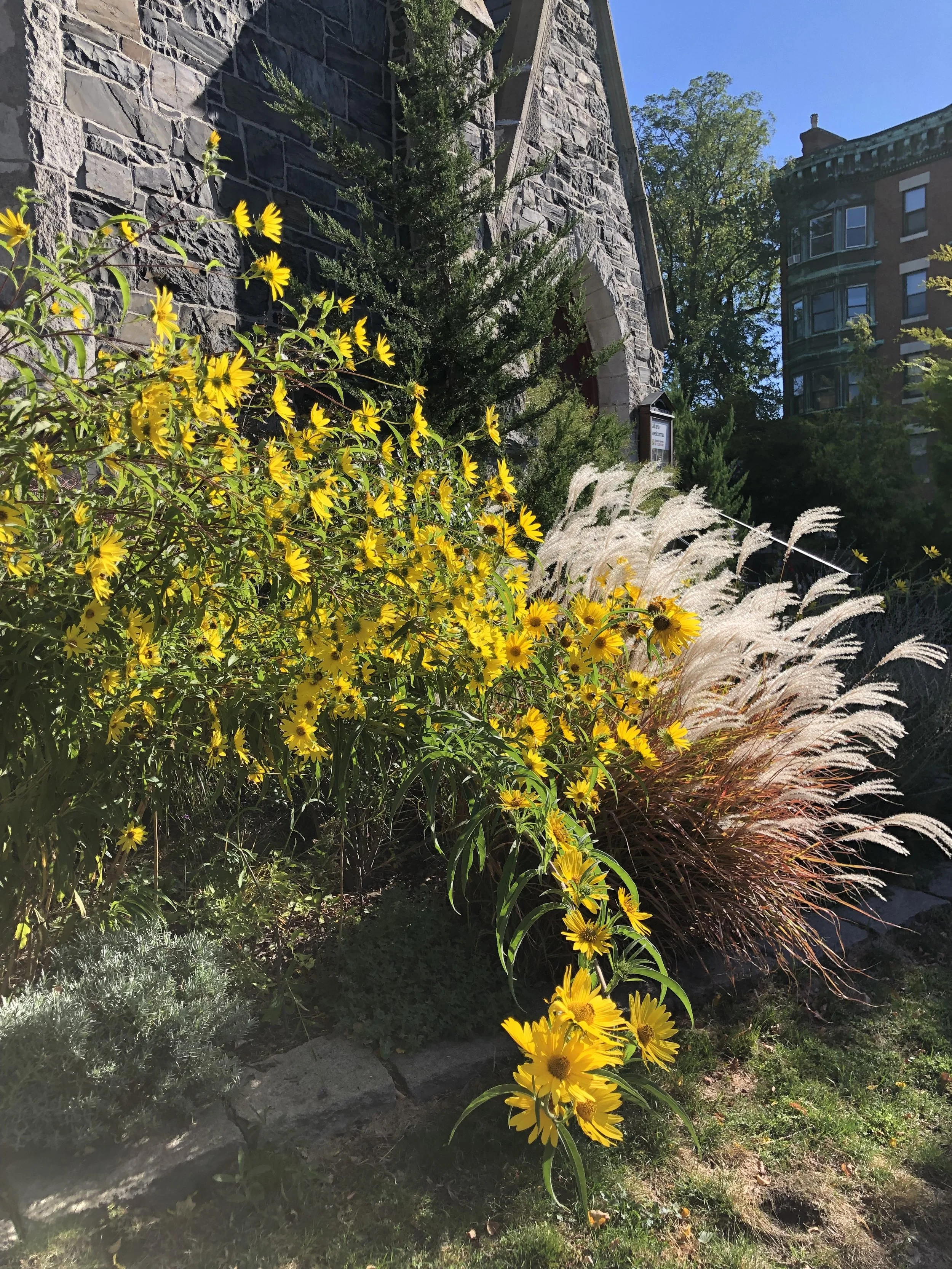 Unusual for an urban church, OCBC is fortunate to have sizable property surrounding its building, some of which has been cultivated in various forms for well over a century. In the late 1990’s the church embarked on a long-term lease relationship with the José Mateo Ballet Theater which involved numerous modifications, system updates, renovations, and repairs to the building. It also served as a springboard for volunteer efforts to beautify the exterior by creating new, as well as expanding existing planting beds surrounding the church building and its parking area.